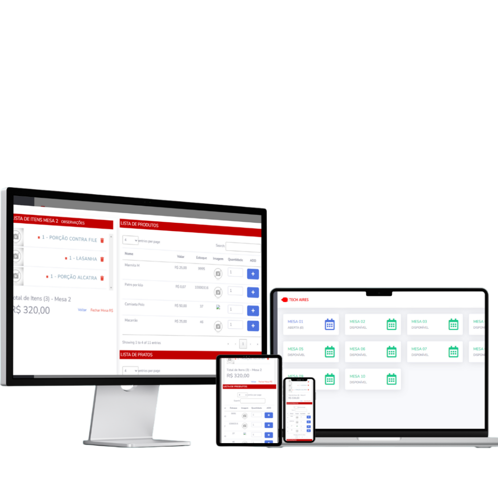Comanda eletrônica integrada, gestão de insumos, controle de mesas e pedidos, além de relatórios para otimizar custos e aumentar a rentabilidade.